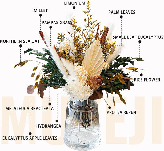 Floral Gem Grass Natural Dried Flower with Vase Preserved Bouquet Arrangement