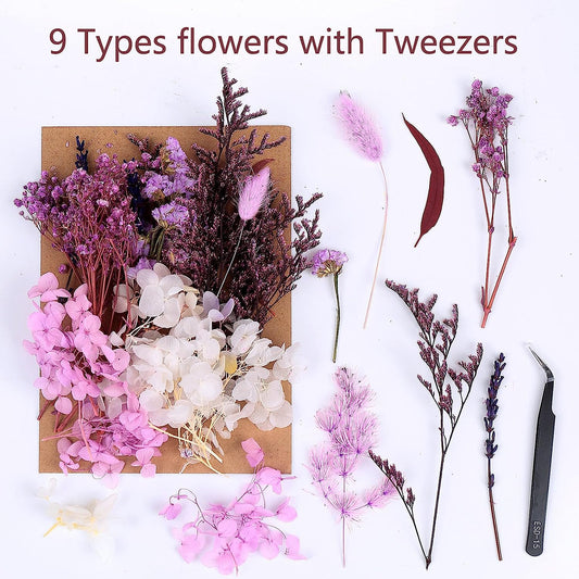 Real Dried Leaf Flowers Plant Herbarium with Tweezers for Resin Molds Craft