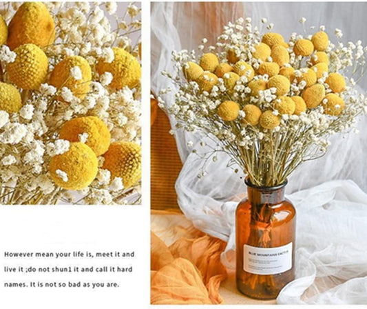208Pcs Gypsophila Dried Flower Bouquet with 15Pcs Natural Yellow Billy Balls