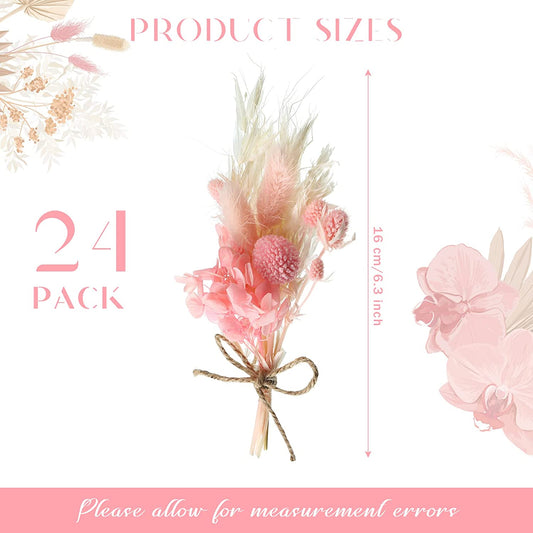 24Pack Mini Dried Flower Bouquet 6.3''Pink Sage White Wheat Real Floral