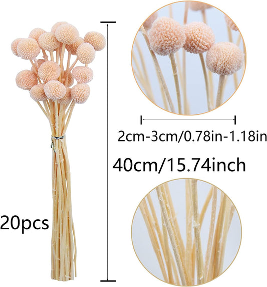 20Pcs Dried Flowers Craspedia Billy Balls Billy Buttons Pink Dried Floral Bouquet