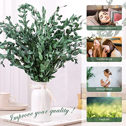 5Stems 16"Dried Real Eucalyptus White Italian Ruscus Natural Preserved Plant