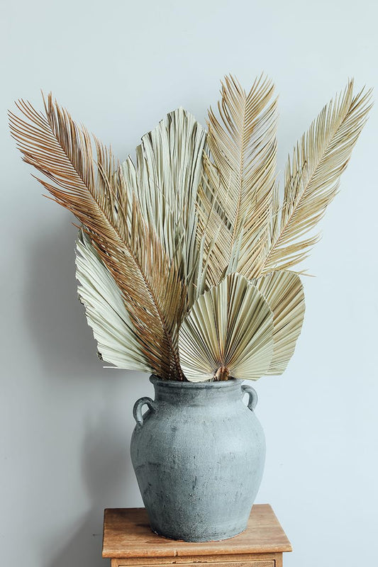 6Pcs 33in Boho Dry Sago Palm Leaf, Cycas Revoluta Stem Large Dried Leaves