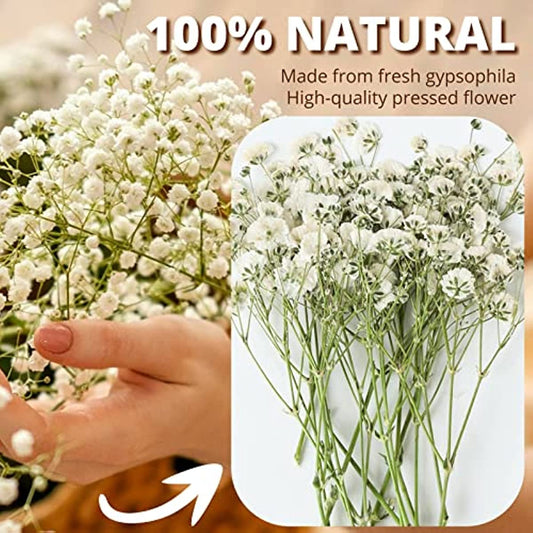 90Pcs White Dried Pressed Babys Breath Flowers Real 100% Gypsophila Bulk