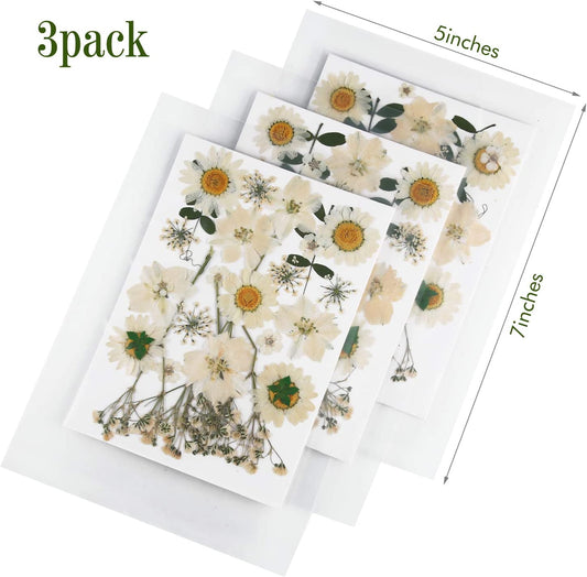 81Pcs White Dried Pressed Flowers Leaves Natural Larkspur Gypsophila for Resin