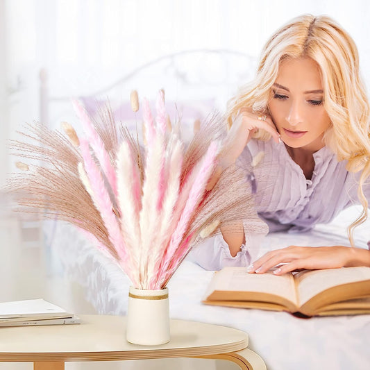 94Pcs Natural Pampas Grass Bouquet Boho Decor Long-Lasting Dried Flowers