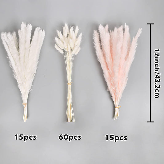 90Pcs White Pampas and Natural Dried Grass Natural Rabbit Tail Grass