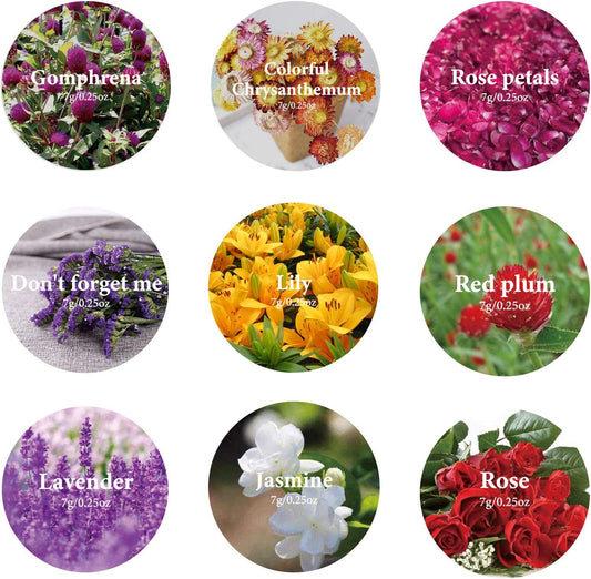 9Bags Dried Flowers 100% Natural Dried Flowers Herbs Kit for Soap Making